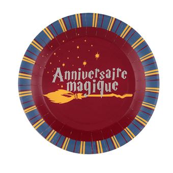 Lot de 10 assiettes en carton décorées d’un balai et de l’inscription « Anniversaire magique » sur fond rouge. Avec leur diamètre de 22,5 cm, ces assiettes sont parfaites pour servir repas, gâteaux et gourmandises lors d’une fête d’anniversaire. Pratiques et festives, elles vous permettent de profiter pleinement de la célébration sans vous soucier de la vaisselle.