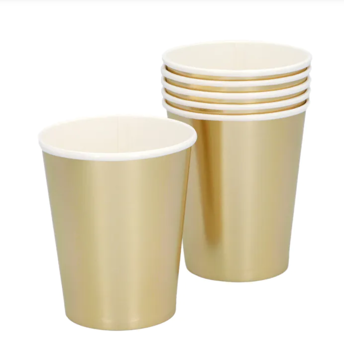 Ce lot de 6 gobelets en carton dorés d'une contenance de 25 cl.