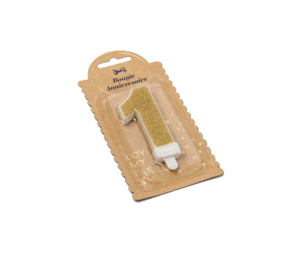Bougie d’anniversaire en forme de chiffre 1 avec finition pailletée dorée. Parfaite pour décorer un gâteau et célébrer un anniversaire ou une date spéciale. Grâce à son support intégré, elle se place facilement sur le gâteau et apporte une touche élégante et festive à votre célébration.