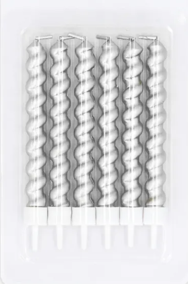Bougies « Joyeux Anniversaire » argent sur pic – lot de 18